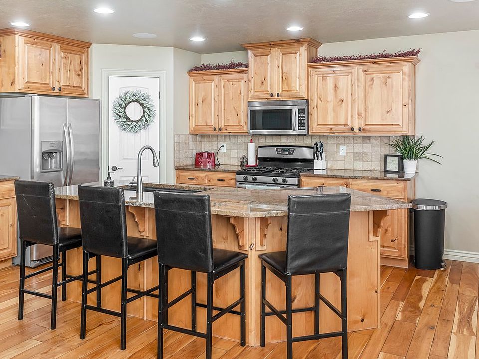 Premium fixturesKnotty wood cabinetryOpen floor planPrivate theaterTwo full kitchensGranite countertopsAbundant natural light