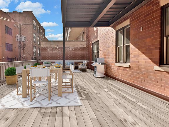 Gorgeous and updated West Loop 2 bed 2 bath condo in an elevator building with a massive 760 square foot rare private terrace off the living room, which spans the entire width of the condo and is perfect for outdoor living and entertaining. Entertain guests in your recently updated kitchen (updated in 2020) which has new LG appliances, quartz waterfall counters, tons of cabinet and counter space and can seat 4 at at the peninsula. The open floor plan features a dining area that can seat 6-8 and a large living area which opens to the massive terrace, one of only two in the building. Newer construction built in 2006, the property has a very spacious primary bedroom which easily fits a king sized bed, has plenty of space for dressers and nightstands, has a large professionally organized walk in closet and an attached primary bathroom with dual sinks, a separate soaking tub, and a walk in shower with steam shower. The second bedroom is a combination guest room/office featuring a Murphy bed (which can stay) and an office area. Completing the unit is the second bathroom. Featuring hardwood floors throughout, new LG kitchen appliances from 2020, newer water heater, and a newer washer/dryer in the unit as well as 1 garage parking space included in the price. Good storage space including a coat closet in the condo and bike storage in the garage. Located in the highly desirable Skinner School District and walking distance to Jones College Prep. Just steps to all of the best shops and restaurants in the West Loop as well as transportation options galore and nearby everyday conveniences such as Whole Foods, Marianos, Target, and more. Well run professionally managed HOA. No rental cap but currently no units are rented. Short term leases not allowed as rentals must be a minimum of 1 year. Dogs and cats of all sizes welcome. HOA fees are $422 per month. Taxes are $11,152.94. This rarely available unit is one you have to check out!