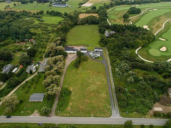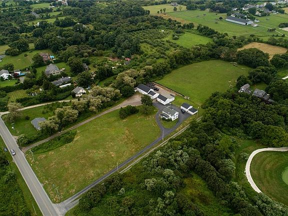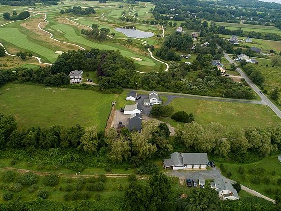 This 4.86 acre parcel abuts Newport National Golf Club. Presently on the land there is a 2-dwelling 1890 farmhouse and 10 abutting garages/storage areas that are easily rentable. The second floor unit of the farmhouse has been completely renovated. This is also an opportunity for a buyer to build on 4 lots. The land is a beautiful parcel with views. There are two driveways presently. A well on the property exists but needs pump repair. A new 4 bedroom septic system was recently installed.