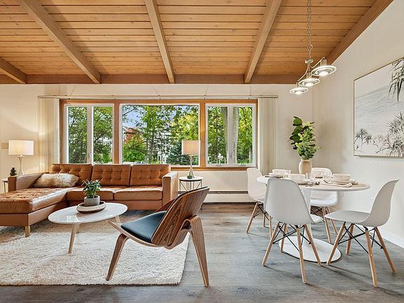 Spacious mid-century modern with vaulted wood-beam ceilings and accent lighting for a cozy, inviting atmosphere. This 4BR, 2BA home sits on a large private lot in a prime Roseville location with easy access to trails, lakes, and walking paths. The smart layout makes the most of every square foot, with bedrooms and baths on two levels—perfect for privacy for family and guests. Iconic MCM details, including vaulted ceilings and a kitchen skylight, enhance the bright, open feel where living and dining flow seamlessly together. The home has been thoughtfully updated, including: 2 new ultra quiet A/C units (with inverter technology, high efficiency (12,000 BTU/each: 24,000 BTU total) window units that effectively and efficiently cool the house; Smart controls can be used with the Google or Alexa app) (2025), roof (2023), garage door and patio door (2024), a fully renovated upper-level bath (2025) and lower-level bath (2022), new kitchen countertops and cooktop (2025), updated main level flooring (2024), and a finished family room in the lower level with brand new carpet, paint and lighting (2025). Enjoy outdoor living with a large fenced backyard, spacious deck, custom concrete firepit pad, and charming gazebo. Conveniently located near Roseville’s Central Park, Bennett Lake, and the Public Library. Grocery options including Lunds & Byerly’s, Cub, Trader Joe’s, Aldi, and Target. Easy access to both Minneapolis and St. Paul makes commuting simple in either direction. Ready to move in and enjoy.