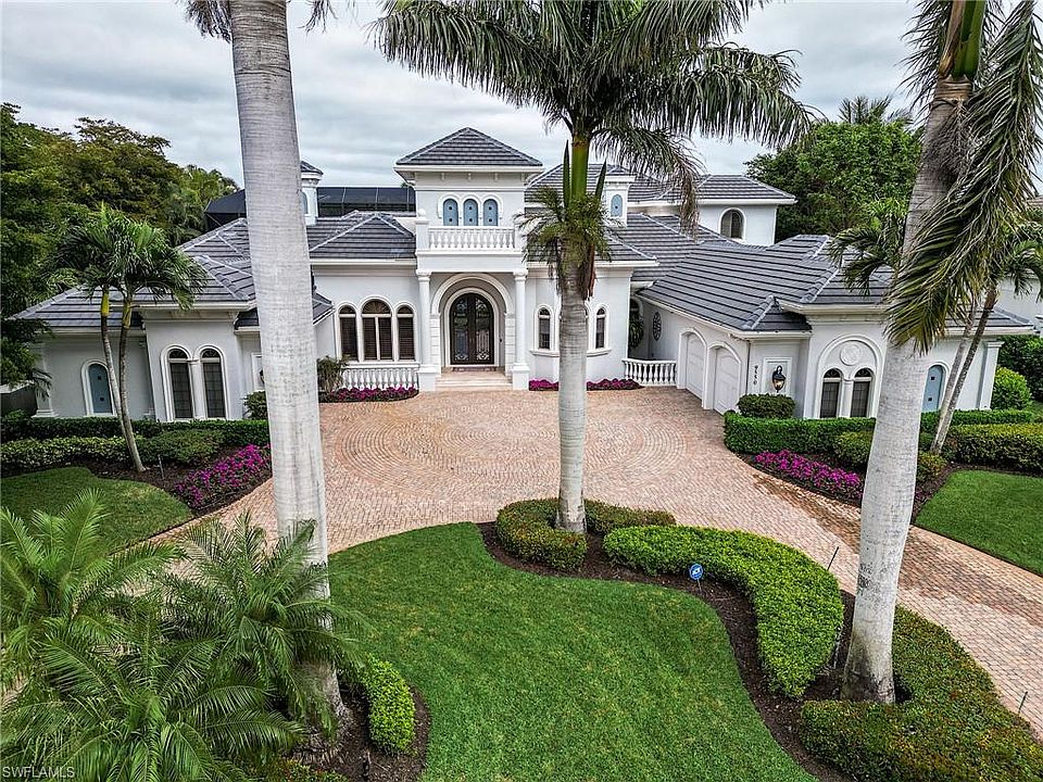 SKIP the waitlist and head directly to the tee box, with the option to buy a full golf membership with this spectacular Frey & Son home in the exclusive Lake Forest neighborhood in Shadow Wood. Enjoy a cocktail on your balcony with truly one of the best property views of lake, #10 North, #18 North and yet another lake. Located in the peaceful center of Shadow Wood, this estate home is one of a kind. Newly painted, new roof 2023, natural gas provides power protection with a whole home generator and heats your huge pool and spa. The lanai will cinch this for an elite buyer—a massive space with outdoor kitchen, huge sun-drenched spaces, as well as a covered area which is received from the family room by a massive 90 degree set of sliding glass doors. Two garages, 2 and 1 car. Master bedroom suite includes a closet that is easy to get lost in. Kitchen updated with quartz counters. Walk-in pantry, as well as an adjacent room for wine and other storage. Upstairs guest suite includes a salon with wet bar, bath with double sink and that gorgeous balcony view. Fiber to the home provides lightning fast internet and television. Member owned Shadow Wood Country Club offers 54 holes of championship golf, 2 club houses, 9 Har Tru tennis courts, bocce, outdoor fire pits, access to a private beach club, fitness center, full-service spa, pickle ball, and private restaurant. New Lifestyle Amenity Center will add 2 resort style pools with zero-depth entry, lap lanes and dedicated kids pool, poolside restaurant & bar, 6 indoor pickleball courts, new racquet pro shop and a grab & go cafe. Great location close to shopping, airport, beaches and much, much more. THIS HOME IS A MUST SEE!