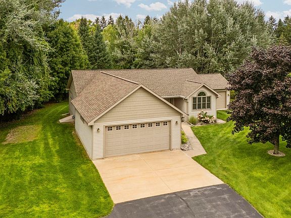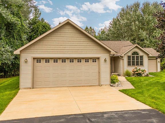 Beautifully maintained home in a great location with shared access to 750' of quiet Thayer Lake frontage, and Torch Lake just around the corner. The inviting, open floor plan draws you in to a wall of windows overlooking the lush, private back yard. The great room features a stone fireplace (gas) and those captivating views. Kitchen features a Jenn-Aire downdraft gas stove, Corian counters and generous cabinet and counter space. Split floorplan with a private primary suite on one end and the other 2 guest bedrooms and full bath on the other end. Spacious primary suite has ample room for a sitting area. The primary bath has been beautifully updated and includes a low thresh hold shower, dual sinks and dual walk-in closets. Bonus room (Other) in lower level is perfect for an in-home gym, den or study. Home also includes an oversized 2 car attached garage (main garage), and a second 2 car attached garage with an a heated area for a dog which leads to an outdoor fenced pen/kennel area, and a fenced rear yard.