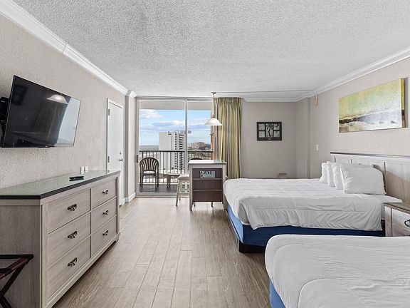 Looking for a vacation get away spot or a great investment opportunity? Home of the famous Ocean Annie's Beach Bar! This gorgeous recently remodeled and fully furnished unit located on the 12th floor at Sands Ocean Club is the perfect spot! Enjoy the breathtaking views overlooking the glistening ocean and Ocean Annie's Beach Bar. This comfy, cozy efficiency has everything you need in the room and at the resort. Cook in on the brand new appliances including a 2 burner radiant cook top and under mount microwave or go down to the restaurants onsite, or walk right down the block! Enjoy this turn key, updated condo including the bedding and furniture, TV, LVT flooring in galley and bathroom, LVP in common area, brand new bathtub/shower, New White Shaker Cabinets with soft close hinges, Granite Counter Tops & Fixtures in Kitchen And Bath. This property is minutes away from shopping, dining, golf courses and attractions that is fun for all ages. Enjoy a massage at the resort spa, shop at the on-site stores, or have a drink at Ocean Annie's right by the beach! Other amenities include lazy river, outdoor pool, indoor pool, indoor jacuzzi, fitness center, laundry facility, restaurant, gift shop, grocery store, ball room, a lounge/bar, and more! Schedule your showing today! This Condo has been given an A+ rating per Sands Ocean Club Owner Services Manager.