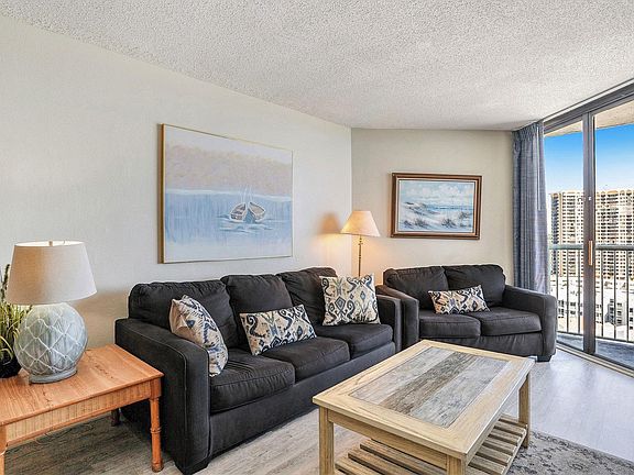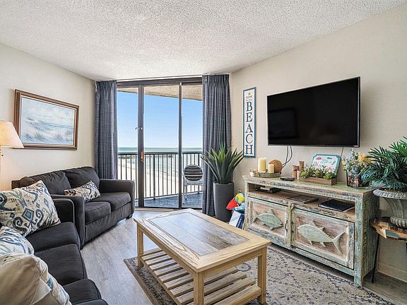 Beautifully furnished 2-bedroom, 2-bath condo on the 15th floor with stunning views of the northern coastline. Bright and airy with abundant natural light. The kitchen features full-size appliances, granite countertops, ample cabinet space, and tile flooring. The spacious master suite offers balcony access and an ensuite bath with a tub/shower combo. The living room features LVP flooring and large sliding doors leading to the private balcony. Located in Sands Ocean Club, just minutes from shopping, dining, golf, and top attractions. Enjoy resort amenities including indoor and outdoor pools, a lazy river, spa, on-site dining, shops, and the famous Ocean Annie's Beach Bar. Perfect as a vacation getaway, investment property, or year-round residence in the heart of the Grand Strand.