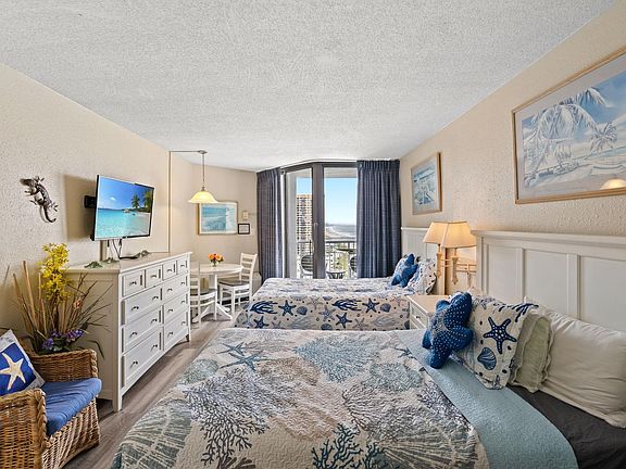 Welcome to your coastal escape at the Sands Ocean Club in Myrtle Beach! This well-maintained efficiency unit offers the perfect combination of comfort, convenience, and oceanfront resort living. Located on a higher floor, the unit features stunning ocean views from your private balcony, where you can enjoy your morning coffee or unwind after a day at the beach. Set within one of the most sought-after beachfront resorts, residents and guests enjoy access to fantastic amenities including Ocean Annie’s poolside bar, both indoor and outdoor swimming pools, a lazy river, dining options, and a relaxing lounge area. Conveniently close to shopping, golf courses, and entertainment venues, this property combines the best of beach living and resort-style comfort. Whether you’re looking for a lucrative investment or a personal vacation retreat, this condo’s prime location and rental versatility make it an outstanding opportunity.