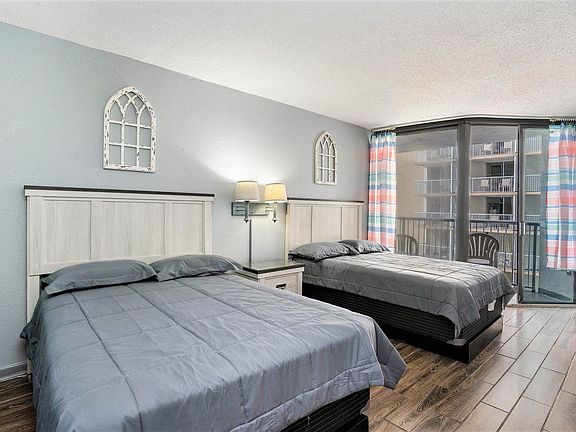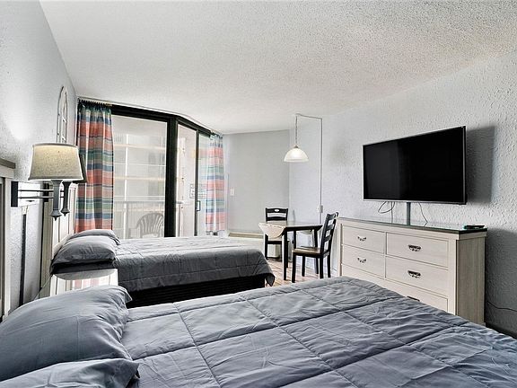 This cozy, completely remodeled (Summer 2025), efficiency unit offers ocean views, a full bath, and a small kitchen area. It features two double beds and plenty of natural light. A new HVAC system was installed in 2024. Ideal as a primary residence, vacation getaway, or investment property, the unit is located in Sands Ocean Club-just minutes from shopping, dining, golf, and popular attractions. Enjoy top-tier amenities including indoor and outdoor pools, a lazy river, spa services, on-site dining, resort shops, and the famous Ocean Annie's Beach Bar. Experience beachfront living in the heart of the Grand Strand.