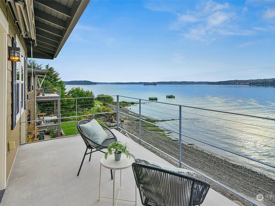 Exquisite top floor unit offers breathtaking, unobstructed waterfront and Olympic Mountain views. Enjoy the tranquility of living right on the water. Large windows enhance the views and bring in lots of natural light. Gourmet kitchen features granite countertops, stainless steel appliances and a spacious walk-in pantry for all your cooking needs. Cozy fireplace in the living room, large den for curling up with a good book or TV time and dining area all with great views. Luxurious Primary Suite with views of the Sound, walk-in closet and spacious bath with separate shower and tub. Spare bedroom has nice views too! Newer carpet, one car garage. Storage unit too! Propane fireplace. Close to Fort Ward State park and Pleasant Beach Village.