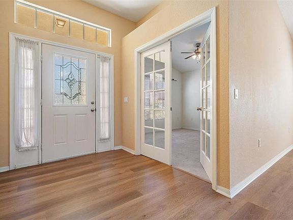 One or more photo(s) has been virtually staged. Move-in ready and beautifully maintained 3-bedroom, 2-bath home in the desirable Asbel Estates community. Enjoy tranquil pond views and a spacious open floor plan connecting the dining and family rooms. The kitchen features brand-new stainless steel appliances, a walk-in pantry, generous cabinetry, and a bright eat-in area. Updates include new flooring in the main living areas, fresh exterior paint, a certified roof, and a sprinkler system. The primary suite offers hard wood flooring, dual sinks, a garden tub, separate shower, and large walk-in closet. The front bonus room has gorgeous French doors making it a perfect office or guest space. Relax on the screened lanai overlooking the pond and enjoy low HOA fees with convenient access to shopping, dining, and major Florida attractions. ALL measurements are approximate and to be verified by buyer.