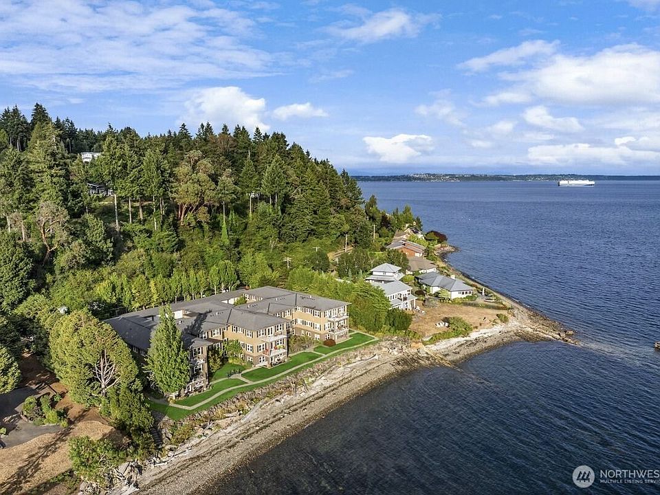 Location! Discover a peaceful retreat w/ this immaculate condo on one of Bainbridge Island's most scenic stretches. Nestled w/in a beautiful waterfront building, this condo offers coastal living, just steps to the water's edge & Fort Ward Park. Launch kayaks, take in sunsets & savor the views of the Olympic Mtns & Puget Sound from your private shared beach & enjoy scenic waterfront walks. This single-level home offers abundant light, 10-foot ceilings, a gourmet kitchen w/ granite counter & ss appliances, cozy fireplace & spacious deck. The large primary suite boasts a luxurious 5-piece ensuite. Complete w/ a garage, elevator access, new carpet, fresh paint & urban amenities at Lynwood Center nearby, enjoy beauty w/ lock & leave convenience!