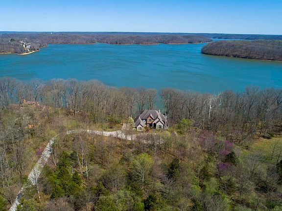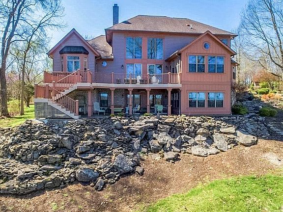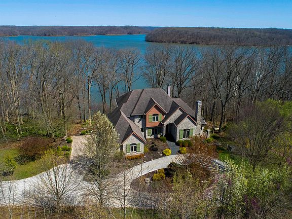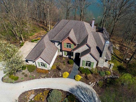 Exquisite residence nestled on 6 1/2 beautiful acres with sweeping, panoramic views of Lake Monroe. Beautiful architectural details throughout this well constructed Victorian, Caribbean inspired home include coffered ceiling, tray ceilings, cathedral ceiling, arch doorways, built-ins, 3 fireplaces, 2 staircases, a 2-story wall of windows overlooking the lake and much more. Over-sized windows provide natural light & most have water views. A covered entry way features an arched front door opening into the 2-story foyer w/a view straight through to the lake. The kitchen includes a butcher block island, granite counter tops, SS appliances, custom cabinets, a double oven, and a walk-in pantry. The most amazing laundry room is off the kitchen. There is a charming breakfast room, and a stunning sunroom w/beamed cathedral ceiling that opens to the expansive deck with al Fresca dining space, and a hot tub overlooking the lake. The 2-story family room features a fireplace, built-ins & a stunning wall of windows w/an incomparable lake vista. An office boasts an appealing coffered ceiling & a window seat bordered by built-in bookcases. A formal dining room offers another dining space. The main level primary bedroom suite features a sitting room w/a fireplace & built-in bookcases. The en-suite bath has a double vanity, separate shower & a spectacular spa tub surrounded by relaxing lake views. Ascend to the 2nd floor via the elegant, curved stairway off the foyer, or the stairway near the kitchen. Three more bedrooms are on the 2nd floor. One with an en-suite bath. The other two share a Jack & Jill bath. An overlook enjoys the spectacular lake scene through the 2-story window wall. The LL includes a rec room, exercise room, sitting room w/fireplace, a custom bar and walks out onto a covered patio, another great area to relax and enjoy the lake and woods. There is a 4-car garage & an outdoor shed. Reach the lake shore by foot or use of an off-road vehicle path. There are 3 private docks with slips in the area with the potential of purchase. Schedule your private showing today!