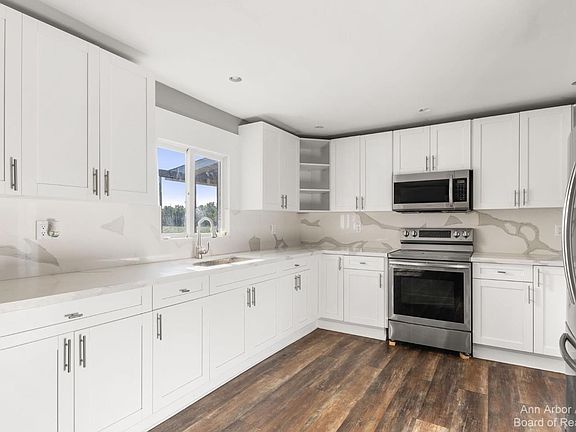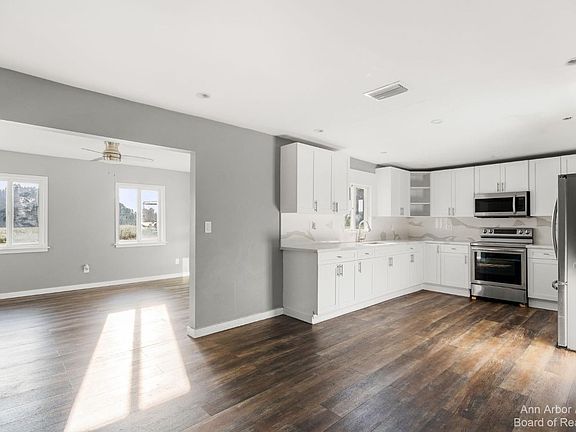 This stunning property offers a perfect blend of modern luxury and rural charm. Completely remodeled, this 3-bedroom, 1-bath home boasts top-notch upgrades throughout. Step inside to discover a beautifully tiled shower, elegant quartz countertops in the kitchen, and pristine white cabinets that create a timeless aesthetic. Brand-new appliances and flooring add to the allure, ensuring both style and functionality. The improvements don't stop there; a new roof ensures worry-free living. Outside, you'll find a massive 104x40 pole barn, providing ample space for all your storage needs or potential hobbyist ventures. With over 20 sprawling acres of land, this property offers endless possibilities. Enjoy the serene countryside from your covered front and back porches, perfect for morning coffee or evening relaxation. Experience the epitome of rural elegance at 9551 Shaw Highway, where modern comforts meet the beauty of nature. Don't miss your chance to make this gem your own!