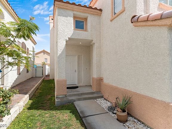 Step into this spacious and well-maintained two-story home offering a perfect blend of style, comfort, and functionality. Featuring a bright open floor plan, this home boasts high ceilings, large windows that fill the space with natural light, and neutral tones that create a warm and inviting atmosphere.The gourmet kitchen is designed for both cooking and entertaining, featuring granite countertops, a center island, modern backsplash, stainless steel appliances, and ample cabinetry. The adjoining family room, complete with a cozy fireplace and a ceiling fan, is perfect for relaxing or hosting gatherings.Upstairs, the primary suite offers a spa-like bathroom with dual vanities, a soaking tub, a separate glass-enclosed shower, and a spacious walk-in closet. Additional bedrooms are generously sized, ideal for family, guests, or a home office setup.The backyard is low-maintenance and private, complete with a covered patio—perfect for outdoor dining, play, or simply enjoying the Las Vegas.