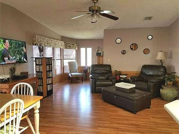 Spacious Home with Laminate Fl Spacious and perfect for entertaining! This 1,764 2/2 with both living room and family room (that could be converted to a 3rd bedroom, easily), features laminate floors throughout, an island kitchen, split floorplan, glass-enclosed lanai with AC/heat, tape and textured walls, new AC, newer dishwasher and water heater. This home also offers an oversized shed with a golf cart included! This home won't last long, with this size of a home at this price!