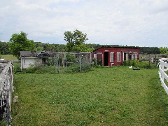 More about the land and outbuildings than the home. 39 acres of pristine land, including pastures, active fields and wooded areas. ATV/riding trails throughout woods, which connect to those on adjoining properties. Outbuildings include an early 1900's historic barn with newer metal roof. Fully wired for electric with sub panel. Contains 5 stalls, chicken coop, feed/medicine storage area, one large tack room and a smaller one. Huge drive up loft with reinforced floor for unloading hay wagons. Two active chutes in floor for throwing hay from loft to lower level. Hay storage in loft estimated at over 2000 bales. Roof of barn was raised in about 1950, and includes many original ladders and hay hook pulley system. Large, two room bird coop is separate. Wired for electric, with lighting. Wall between the two rooms, with each having separate outside, enclosed access. Large, open, two bay garage, plus attached woodshed and wire enclosed bird area. This also has a large, wire/fence enclosed area for outside access for animals. Additional large equipment storage area behind house. Large run in shelter for animals in pasture. There is a smaller, cabin type structure along the trails in the woods. Has a wood burning stove in it and newer door. Many fenced in pastures for rotational purposes. These include a winter pasture, with barn access and close to water supply. 2018 upgrade includes a fenced lane for access from winter pasture to the run in shelter. House has a lot of character. Older, wood fireplace with granite rock wall and hearth/mantel of granite. Lots of wood features throughout living room, including ceiling, wainscoting and ceiling beams. Attached front porch, with lots of light, makes it great for wood storage. Secondary basement access here. Huge master bedroom with walk in closet. Large window and secondary window bring it lots of light. Large, heated, walk in closet with window. Sliding doors to patio at back of house, partially covered. Established herb/flower gardens, with potential for more gardens. Electricity to an area which is currently a fire pit in back yard, with potential for water feature. No neighbors in sight, but within a short distance. Remodeling in 2017 included: Conversion from fuel oil to direct vent propane furnace. Relocating electric water heater to basement and conversion to propane. Electric upgrade. Insulation and weatherstripping. Note that finished square feet is a conservative estimate, as areas that were not insulated and/or heated were not included. This includes the front hallway, laundry room and front porch. The area in living room for fireplace was removed as square footage, as was the kitchen space occupied by cabinets/appliances. I purchased a 1900 square foot house and have determined that the actual square footage is a lot less. But I love the area, outbuildings and land. House has a lot of potential now, due to room for expansion to include a master bath, expanded kitchen and patio upgrades.