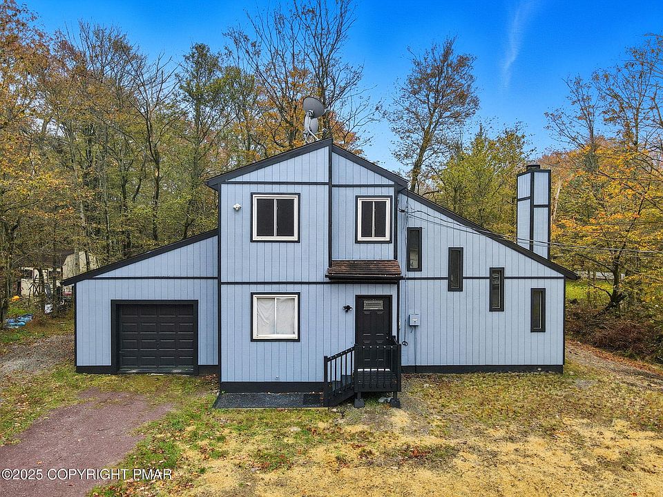 Finding a truly move-in ready chalet of this style can be a challenge, but your search ends here. This stunning contemporary home in the sought-after Pocono Country Place community has been completely renovated for today's buyer. Step inside to a bright, open-concept layout where new flooring flows seamlessly throughout. The living room is centered around a cozy wood-burning fireplace, creating the perfect mountain ambiance for relaxing after a day of adventure. This open design leads into a brand-new, modern kitchen, efficiently appointed w/granite countertops, new stainless steel appliances, & crisp white cabinetry. The flexible floor plan offers three spacious bedrooms & two full, tastefully remodeled bathrooms w/new tile. For ultimate convenience, one bedroom & a full bathroom are located on the main level, ideal for guests or single-floor living. Outside, the level cleared yard is a blank canvas ready for your dream outdoor living space, w/ ample room for a future patio or fire pit. The lifestyle extends far beyond the property w/access to resort-style community amenities, including multiple outdoor pools, lakes w/sandy beaches, a clubhouse, playgrounds, tennis & basketball courts, & the peace of mind of 24/7 gated security. This property is a fantastic opportunity for a personal vacation home or as an investment property.