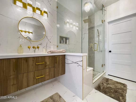 Completely remodeled gorgeous 2bed/2bath condo w/ designer finishes & thoughtful upgrades throughout. The open kitchen showcases quartz counters, farmhouse sink, custom glass tile backsplash, new cabinetry, & a full suite of ss appliances (2024).The spacious primary suite features a walk-in closet & a spa-inspired bath w/ European porcelain tile, dual vanities, oversized walk-in shower, & bidet. The 2nd bedroom is paired w/ a beautifully updated bathroom featuring imported European tile a soaking tub. Additional highlights include new washer/dryer & water heater(2024), stylish flooring, & modern lighting. Enjoy morning coffee/evening cocktails on the private patio overlooking the pool. The gated community offers resort-style amenities including heated pool, spa, BBQ grills & lush