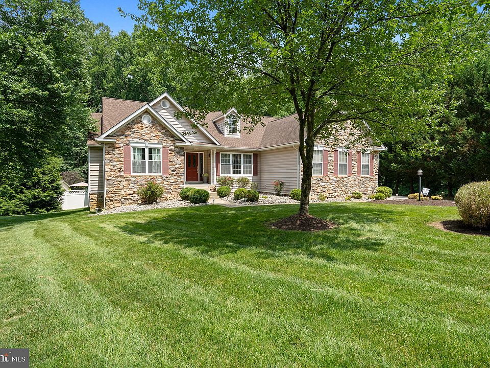 Welcome home to this stunning almost 5,000 sq ft rambler with a fully finished basement in the sought after Hawksbury subdivision in La Plata! Make your way up to the front door soaking in the desirable curb appeal with stone exterior, tasteful landscaping, and an inviting covered front porch. Step inside to an open and airy floor plan featuring gleaming hardwood floors throughout the main living areas. Off the foyer, you’ll find a formal dining room to the right and a spacious family room ahead with vaulted ceilings, a double-sided gas fireplace, and an adjoining sitting room that leads to the deck overlooking the fully fenced backyard! The bright, updated kitchen is a true showstopper with brand-new quartz countertops, a stainless steel farmhouse sink, a kitchen island, stainless steel appliances, a pantry, recessed lighting, and a cozy breakfast nook. A powder room and laundry room, utility sink, and access to the 2-car garage are conveniently located off the kitchen. The main level also boasts a large primary suite with cathedral ceiling, dual walk-in closets, and a spa-like bath featuring dual vanities, soaking tub, and a walk-in shower. Three additional bedrooms are on this level, with bedrooms #3 and #4 sharing a beautifully renovated full bath. The fully finished lower level is designed for entertaining and multi-generational living! Complete with a sprawling rec room with built-in shelving, a home theatre, a 5th bedroom/bonus room with walk-in closet, a full bathroom, and a second full kitchen with pantry! From here, walk out to the covered patio and enjoy the backyard oasis with a stunning in-ground Gunite saltwater pool—perfect for summer gatherings! The yard is level, fully fenced, and offers plenty of usable space. Recent updates include: roof (8 yrs), updated Thompson Creek windows, front door (5 yrs), brand-new quartz countertops and farmhouse sink, hallway bathroom (2 yrs), new attic insulation (2 yrs) and more. Conveniently located close to commuter routes, shopping, dining, and everything La Plata has to offer! Schedule your showing today!