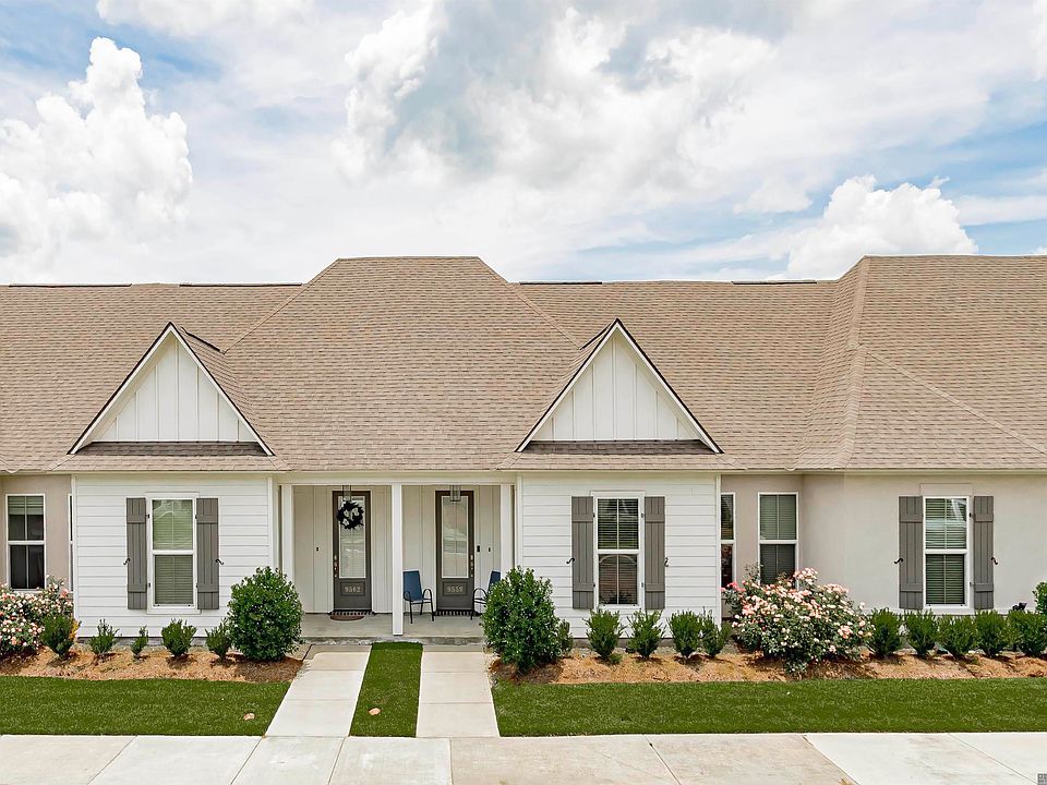 Experience modern comfort and low-maintenance living at 9558 Creekview Dr. in the sought-after Dawson Bluff Townhomes, a gated community built exclusively by Alvarez Construction. Located near the Mall of Louisiana and Baton Rouge General, this townhome offers easy access to shopping, dining, healthcare, and major business centers. The neighborhood features a secure gated entrance, resort-style pool, and a 14-mile, 12-foot-wide paved pathway perfect for walking, running, or biking to nearby amenities. This beautifully designed 3-bedroom, 2-bathroom single-story home showcases an open-concept floor plan with soaring 10' ceilings, luxury vinyl plank (LVP) flooring, and oversized ceramic tile in wet areas. The living room flows seamlessly into a spacious kitchen and formal dining area. The kitchen is a chef’s dream, featuring a large center island with upgraded paint finish, GE stainless steel appliances, a 4-burner gas cooktop, separate wall oven, pantry, and 3cm granite countertops. Additional upgrades include ceiling-height cabinetry, a single-compartment sink, and a trash drawer with dual bins. The private primary suite includes a spa-inspired bath with dual vanities, a garden soaking tub, a separate water closet, and a large walk-in closet. Other highlights include a full-sized utility room, private garage access, and built-in smart home technology, including a WiFi-enabled SmartHub, security system with an exterior camera, smart garage opener, and a wireless smoke/heat detector. Three months of alarm monitoring are included. The HOA fee of $145/month covers gate maintenance, pool upkeep, green space landscaping, common area utilities, and lawn care, giving you peace of mind and a beautifully maintained community. Don’t miss your chance to own this move-in-ready home in one of Baton Rouge’s most connected and convenient locations!