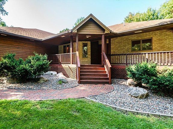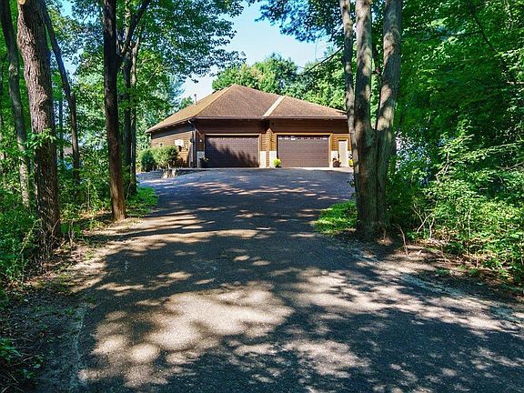 Wow! What an opportunity! Home, shops and land all wrapped up in one! The rambler has a main floor with a primary bedroom with awesome views of nature. Large closet and bath attached. It is an open concept great room, with fireplace, and windows galore. 4 season porch that walk outs to the huge deck and an office with built ins round this floor off. Lower level has 2 more bedrooms, with walk in closets, full bath with whirlpool. The main amusement room has a wood burning fireplace. This level is a walkout. Also are 2 laundry rooms one up, one down, central vac, ceiling fans, tons of storage and hardwood floors. Now for the outside, attached 7 car garage, that is heated, with tall ceilings and has a handicap lift into the home. The lower garage has 4 parking spaces, an office with fireplace and attached party room with a wet bar, hot tub, sauna & fireplace. This garage is heated and has water. All of this on 3 acres of land.