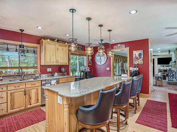 Cozy fireplaceGranite countertopsSpacious kitchenClassic hickory cabinetsBrand-new flooring