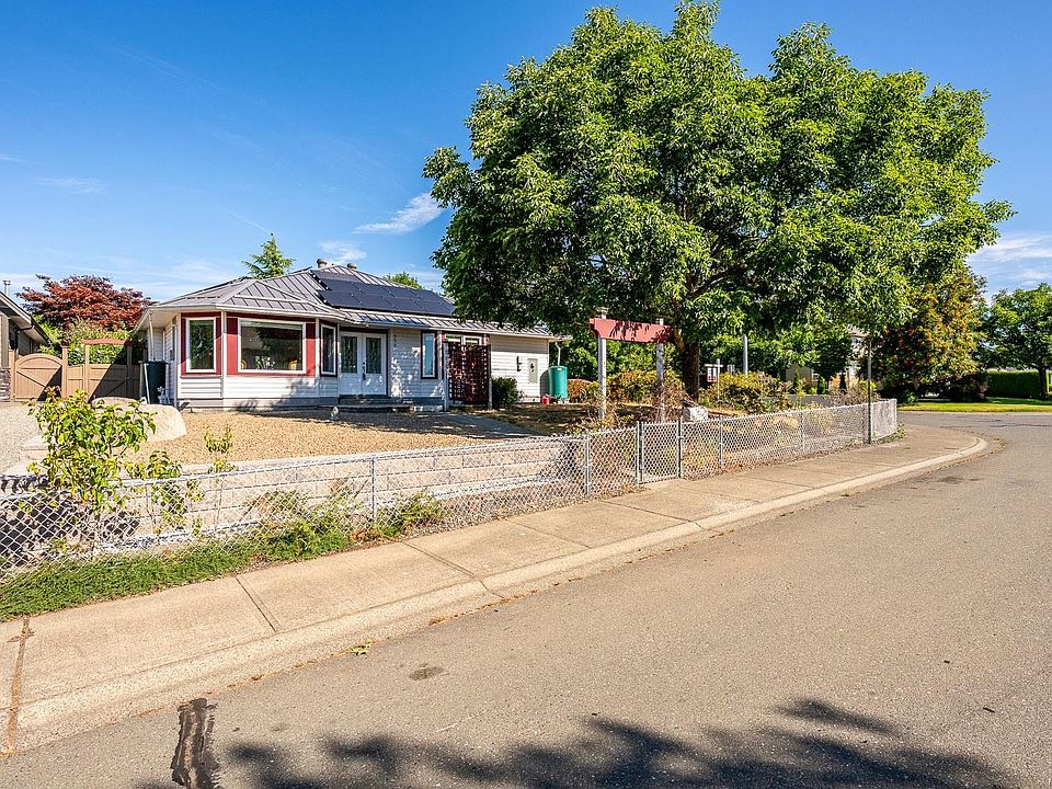 Discover an amazing blend of comfort, charm, and efficiency in this 1,751 sq.ft. rancher. Featuring 3 bedrooms and 2 bathrooms, with the flexibility to transform one bedroom into a stylish den with wet bar, this home adapts to your lifestyle. A durable metal roof, solar panels, and new copper plumbing offer peace of mind and long-term savings. The sunny backyard is a gardener’s dream with fruit trees, a large garden, and a storage shed, while the composite deck is ideal for relaxing or entertaining. Complete with a double garage, 200 amp service and em E.V charger, this home has it all inside and out!