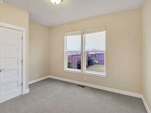 Don’t miss this beautiful, immaculate Bruce Wiechert custom home, located down a secluded driveway at the end of the street, creating unexpected privacy in an area of newer homes.Built by one of Willamette Valleys most prestigious builders, this 2021 energy efficient 3 bedroom plus flex room, 2 bath home also has a den and boasts high tray ceilings, quartz counters throughout, engineered plank flooring, stainless steel appliances, gas stove, finished oversized garage. The Hardie Board Siding and 2 x 6 exterior walls offer extra insulation.The single level split bedroom design is amazing. The high windows flood the great room with natural light. Imagine sitting by the warm gas fireplace on a cold winter night or retreat to the peaceful primary bedroom with large private bathroom, plush carpeting, tray ceiling and generously sized walk-in closet.The fenced landscaped yard with sprinkler irrigation is private and has enough space for your vehicles and some small toys