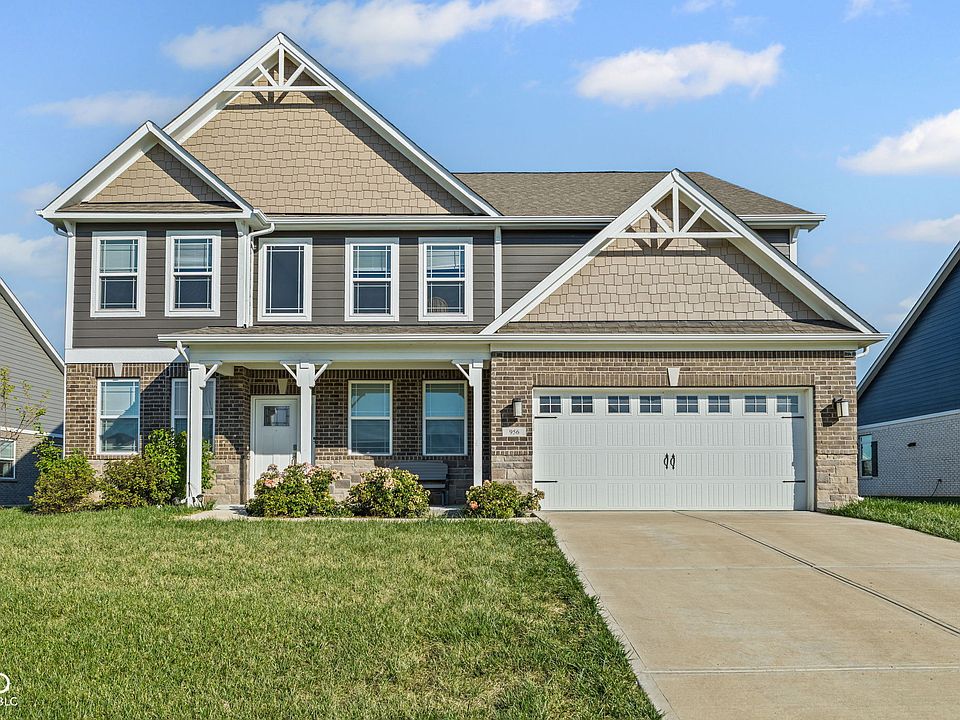 Welcome to this beautifully designed Denali floor plan located in the highly desirable Fieldstone community in Greenwood. Built in 2021, this spacious home offers four bedrooms, four full bathrooms, a private den, and a large upstairs loft, providing the ideal combination of functionality and flexibility for today's lifestyle. The main level features an open-concept layout with a chef-inspired kitchen at the center, complete with a large center island, stainless steel appliances, abundant cabinetry, and seamless flow into the dining area and great room. A double-sided fireplace adds warmth and character, while a built-in boot bench off the garage entry adds everyday convenience. Upstairs, the private primary suite includes a spa-like bathroom with a tiled walk-in shower, garden tub, dual-sink vanity, and generous walk-in closet. Bedroom two features its own private full bath-perfect for guests or multigenerational living-while the additional bedrooms are well-sized and share easy access to a third full bath. The expansive loft offers endless possibilities for a second living space, playroom, or media area. Additional highlights include a main-floor home office, Smart Home Technology package, excellent storage throughout, and a two-car attached garage. Located near Center Grove schools, shopping, and dining, this home combines modern design, thoughtful layout, and high-quality finishes in one of Greenwood's most sought-after neighborhoods.