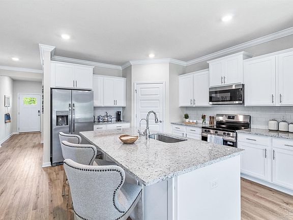 Large center islandTwo-car garageFour generously sized bedroomsSpacious showerSleek stainless-steel appliancesWhite cabinetryPrivate water closet