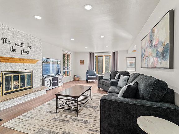 Located in the shadow of Lambeau Field, this 4BR/2BA split-entry home offers a multitude of great 2024 updates incl. kitchen appliances, sink+faucet, counters, backsplash, flooring throughout, baths w/new showers, sinks+faucets, int paint, light fixtures & epoxy floor in laundry room! Spacious LR w/wood-burning FP, formal dining room. 3 bedrooms & full bath on upper level. Sunroom w/sliding door opening to covered patio w/new concrete. LL offers 1000+sqft finished space composed of a large rec-rm w/ built-in bookshelves., ent center & 2nd fireplace. Large part-finished laundry room w/ adjacent finished storage room. 4th bed, 2nd full bath & office complete the LL. 2-stall garage insulated+drywalled w/epoxy floor. Fenced yard, roof+facia 2018. Fully furnished.