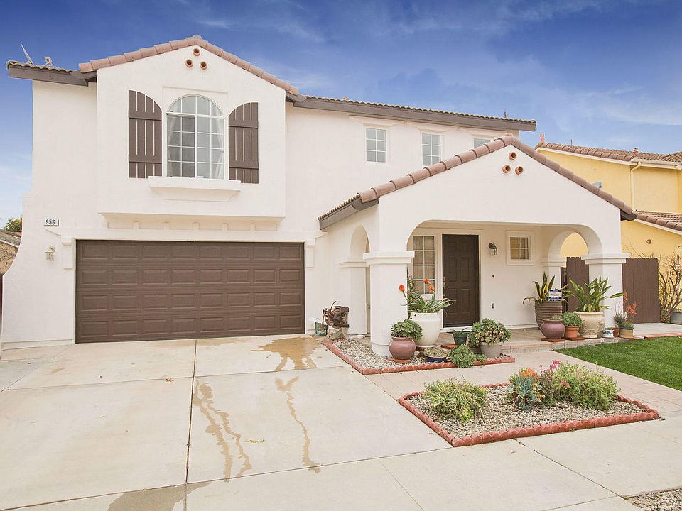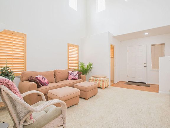 This Beautiful Home has been well cared for. Freshly painted exterior, first floor interior, and fresh sod in front yard for the New Home Owners. As you enter this three bedroom and two half bathrooms. You will notice the Dramatic High ceilings with natural day light sun in the formal living room. Installed wood shutters that match the stairs railing. Your Stunning and Comfortable Home has forever updates. Family room with fireplace that lights up with the ease of a switch. Dining room installed with laminate kid friendly flooring and french doors leading to patio. Your gourmet kitchen has wood flooring, kitchen island, walk in pantry with glass door. Bamboo flooring installed on second floor landing, Master bedroom, and second floor bedroom being used as office. Master bath and second floor bath friendly laminate flooring for the ease of spills. Master retreat has high ceilings and ceiling fan Your entertaining back yard is low maintenance also offer a She Shed that will be great for anything. Home is close to Schools, Shops, & FWY access. No HOA & No Mello-Roos. This Great Home has enough space for parking on both sides of the home. Hurry this Home will not last.