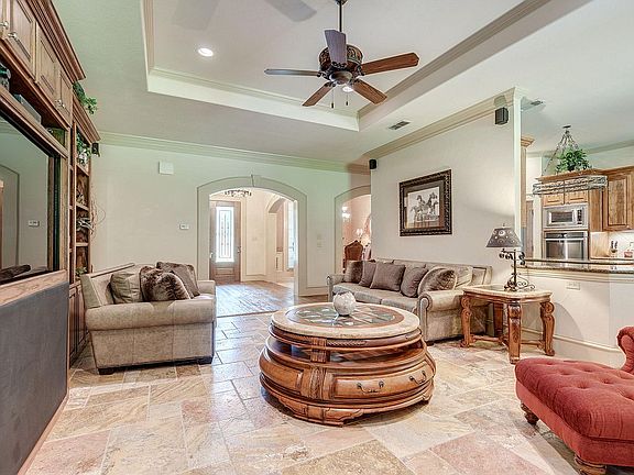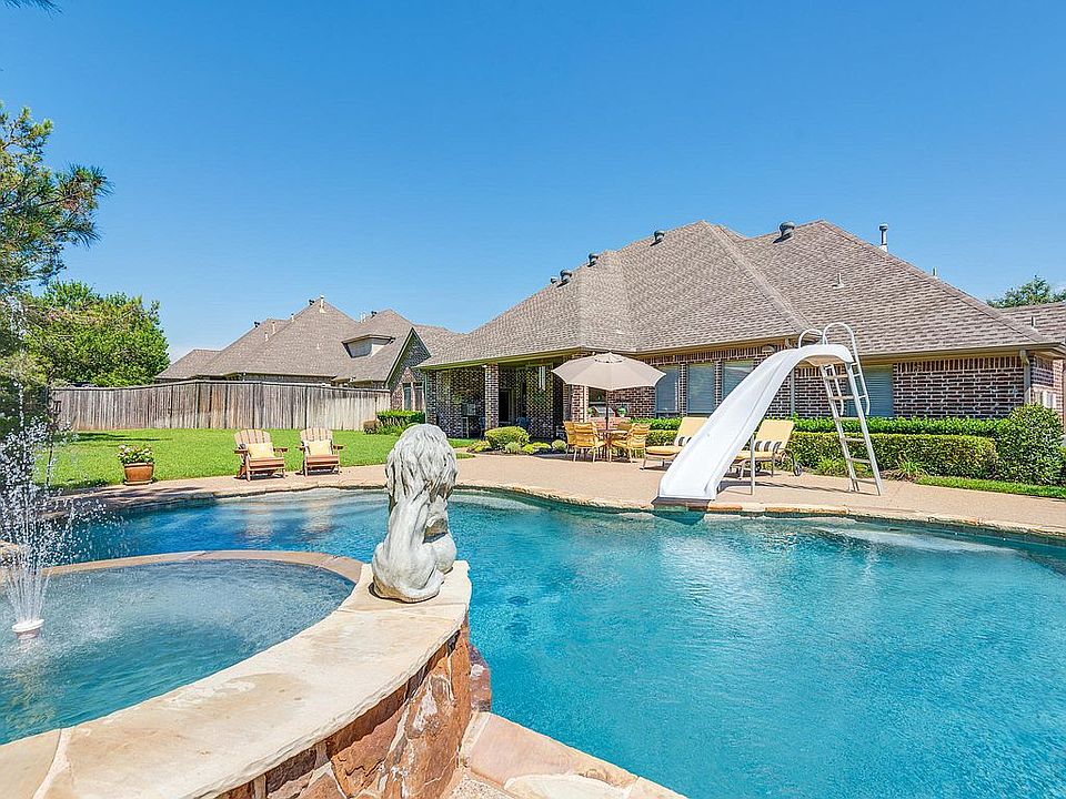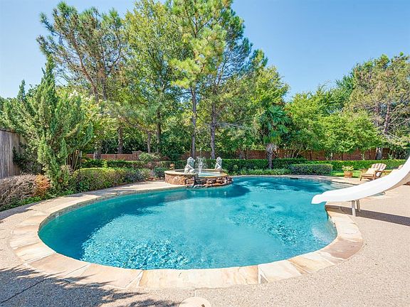 This beautiful custom built home is nestled on a near half acre treed lot in the heart of Keller*Details such as hand-scraped hardwood & travertine floors, extensive crown molding, casings, millwork, custom cabinetry, 7inch baseboards & solid core doors reflect the finest quality*An open floor plan includes a stone, gas log fireplace & entertainment center*A well equipped kitchen offers granite counters, SS convection double ovens & gas cooktop*Enjoy a downstairs media room & upstairs game room*The 3rd garage has been partially converted to a home office with credenza & private entry*Covered patio with built in grill overlooks a salt water heated pool with waterfall, spa, big yard & new fence. See docs attached