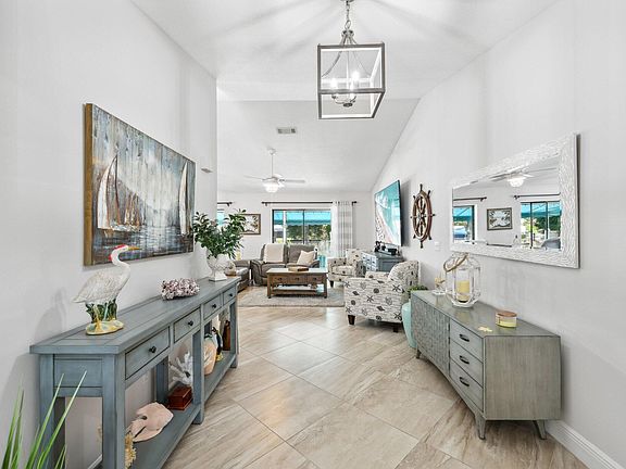 Nestled on over a quarter-acre lot with direct access to the intracoastal and ocean, this beautifully renovated 3-bedroom, 2- bathroom w/ a spacious bonus room ideal for a den, office, or additional living space is the perfect blend of coastal charm and modern elegance. Upon entering, you are greeted with an abundance of natural light and soaring vaulted ceilings that create an airy, open atmosphere. The seamless flow leads you directly to the backyard, where you'll enjoy stunning views of the water from every angle. The heart of the home is the newly updated kitchen and living areas, designed for both functionality and style. The layout is perfect for entertaining, with a brand new saltwater pool and travertine pool deck that invite you to relax and unwind. Step outside to the screened-in patio, where you can sip your morning coffee while enjoying the peaceful sounds of nature, overlooking the pool, yard, and canal. For boating enthusiasts, this home includes a boat dock with a lift, allowing for easy access to the water right from your backyard. Additional features include a newer metal roof, updated A/C, and hurricane protection for windows throughout. The home also offers a 2-car garage, multi-car driveway, and an extended driveway perfect for an RV or extra boat storage. Spacious and well kept shed on the side of the home for storage and/or a workshop. Conveniently located just 10 minutes from major highways and within walking distance of local grocery stores, restaurants, and shopping, this home combines luxury, comfort, and prime location. The sellers boat that is currently on the lift is also available for purchase. Don't miss the opportunity to own this exceptional waterfront property - schedule a showing today!