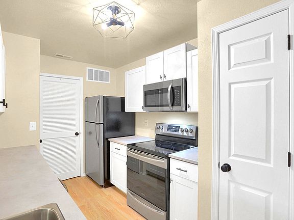 Welcome to 956 Tampico Court! A stylish 2-bedroom, 1-bathroom home that seamlessly blends chic modern design with industrial flair. The open-concept living area is bathed in natural light, featuring sleek white cabinetry and stunning laminate flooring throughout, creating a fresh and inviting atmosphere. Both bedrooms, as well as the living room, offer picturesque mountain views, adding a serene touch to your everyday living. The bathroom has been updated with bright white cabinetry, vertical subway tile, black industrial fixtures and laminate flooring. The property also features a nice balcony for those beautiful summer evenings!