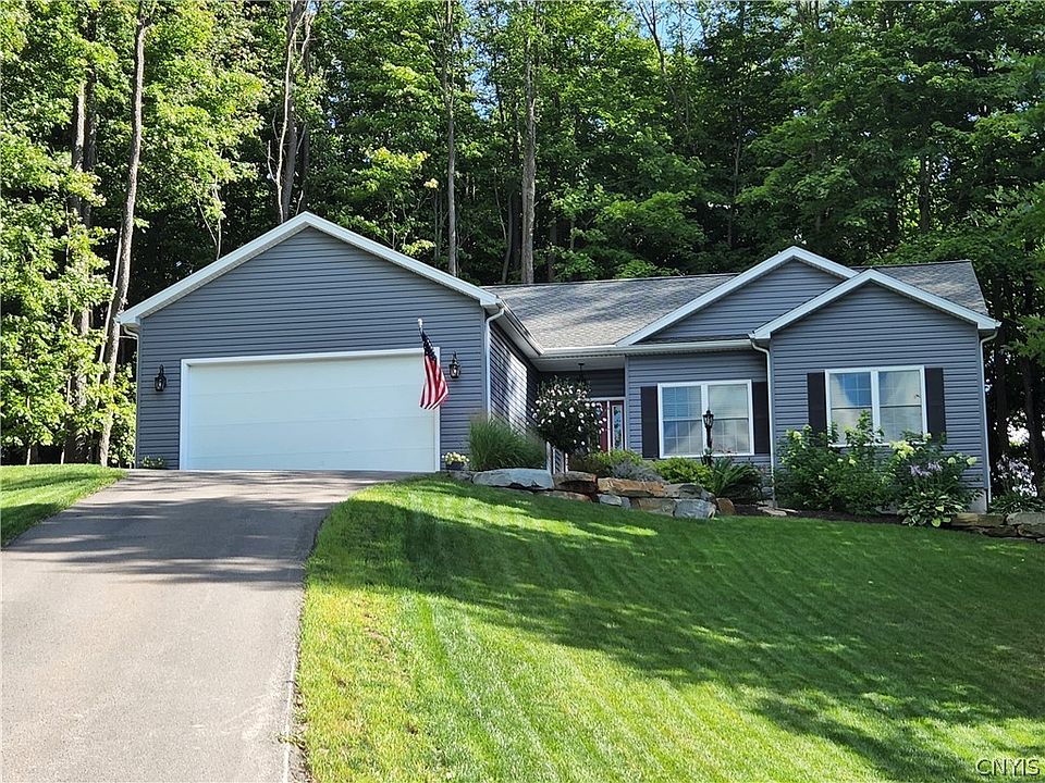 Welcome home to your almost new well-built and well-maintained ranch home with a fantastic full open floor plan. The entryway not only looks out over the golf course and distant views, but then opens to great room w/vaulted ceiling, gas fireplace, maple cabinets in kit. w/granite counters, breakfast bar & stainless steel appliances. Handy walk-in pantry & first floor laundry w/ceramic tile floor. Master bdrm. suite w/walk-in closet & bath with new tiled shower. Need more space for fun, then finish off this huge full basement. The owner has also had this property professionally landscaped and is just gorgeous and inviting, enjoy plenty of quite time with a cozy fire on the stone patio or larger gatherings. The panoramic view of golf course, pond & valley are fantastic!! Located in great neighborhood convenient to Ithaca, Cornell, Greek Peak to ski, golf courses, SUNY, shopping, and short drives to lakes, trials, gorges/falls, breweries and wineries!!!
