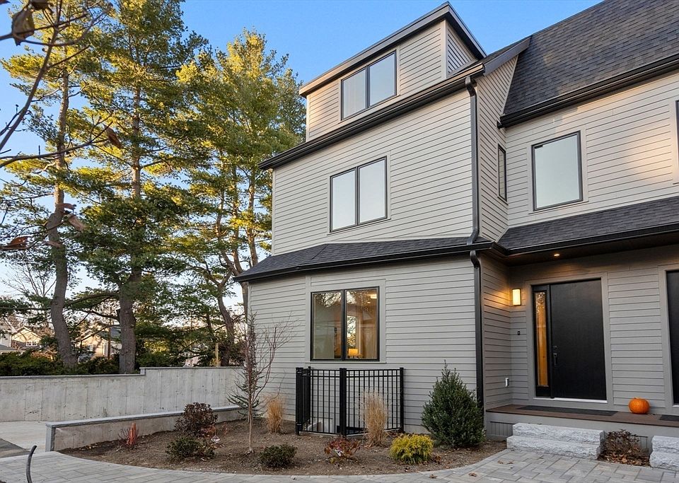 Welcome to The Residences at Four Corners, a collection of seven spacious townhomes in the Four Corners neighborhood of Newton Highlands. Crystal Lake, Whole Foods, village shops, Cold Spring Park, and Newton Centre are all nearby, and both the Newton Centre and Newton Highlands Green Line stops are an easy walk. Each home sits above a private heated parking level with direct access to an individual two car garage, also heated. Floor plans feature an open first floor and a first-floor bedroom suite, with four-to-five-bedroom layouts and three and a half or more baths. Kitchens are finished with custom cabinets, Thermador appliances and quartz counters. Two homes include private elevators with direct service from the lower level to the second-floor primary suite. Best of all these homes have gas heat, hot water, cooking and outdoor BBQ hook-ups and every residence offers a fenced private yard with a patio. Ask agent about "Exclusive Use area" in front of unit 6 garage door.