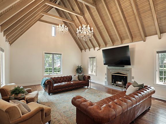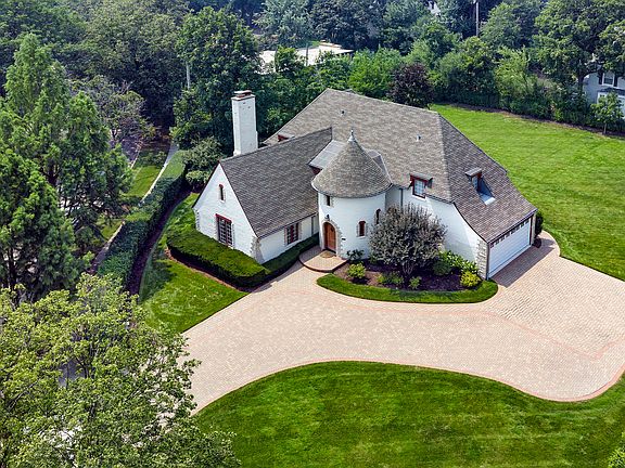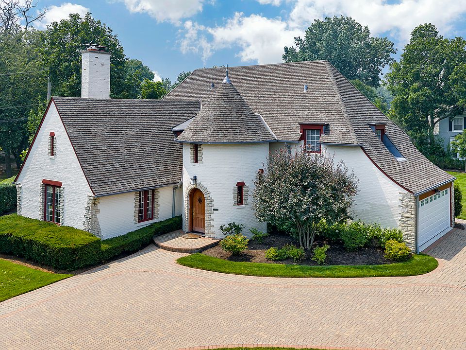 Welcome to this exquisitely maintained and thoughtfully updated Country-inspired estate, originally built in 1929 and offering 4,400 square feet of timeless elegance and modern convenience. Situated on a beautifully landscaped double lot with a large drive, this 5-bedroom, 4.5-bath home masterfully blends architectural character with modern finishes. From the moment you arrive, the storybook charm of the turreted entryway, arched front door, and white brick exterior with stone accents makes a lasting impression. The charming foyer with double height ceilings and gorgeous wrought-iron banister welcomes you to this wonderful home and leads to the massive great room with beamed ceiling, stately wood burning fireplace and 3 crystal chandeliers. The open-plan gourmet kitchen is the heart of the home, featuring a large center island, custom cabinetry, premium appliances, and stunning brass-accented lighting fixtures to match the range hood. The adjoining dining room is perfect for both casual meals and elegant entertaining, and there is room for a 2nd seating area in this light-filled space that overlooks the rear grounds and custom built deck, perfect for al fresco meals. Natural light floods the spacious living spaces, highlighting the clean architectural lines, soft neutral palette, and high-quality finishes throughout. Also on the first floor is a spacious main floor bedroom with gorgeous ensuite bath. So convenient! Ascend to the second floor where you can overlook the great room as you move through arched doorways that lead to 3 spacious bedrooms, 2 full baths and a full laundry room. The primary suite is a true sanctuary with large walk-in closet and a spacious bath with double sinks, soaking tub, and separate shower. The beautifully finished lower level offers plentiful space with a huge recreation room, oversized bedroom, and lovely full bath. With its blend of 1920s craftsmanship and modern elegance, this home offers the best of all worlds. Whether you're hosting dinner parties, relaxing with family, or working from home, this unique residence offers exceptional style and function in every detail. Don't miss this opportunity to own a historic gem updated for contemporary living.