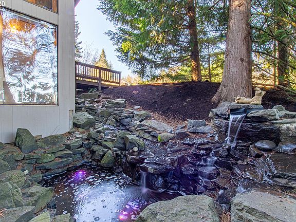 Hip Modern Flair Dayranch on a .52 AC private lot on Cooper Mountain. Features a spacious Master Bedroom Suite on the main floor, soaring ceilings, remodeled kitchen and abundant storage. Enjoy living on a large and private property, or reap the benefit of dividing the lot. Unique Northwest forested setting with a tranquil water feature and front walkway "bridge." One of a kind home inside the Mountainside HS boundary.