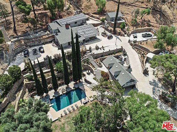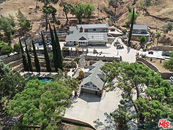 One of Sunlands largest remaining ranch estates is coming to market. The 6 acre ranch sits perched upon a hill with beautiful city and canyon views. From the moment you enter the private driveway leading up to the gated compound, you are surrounded by nature. Upon entering the double gates, you drive down a beautiful road with horse and alpaca pens leading you up to the stables, 6 car garage with attached guest house, and beautiful pool area. There is also an additional guest house located next to the main residence. The main residence which overlooks the breathtaking canyon views offers a large kitchen, wine room, office and oversized great room with over 20ft of vaulted ceiling's detailed with wood beams. Upstairs there is a private loft, elegant sitting room and two additional bedrooms as well as a bonus room. The Ranch offers a getaway with tremendous privacy, yet is centrally located in the heart of Los Angeles. Land is zoned R40. Property has solar panels that are paid for.