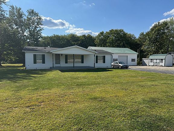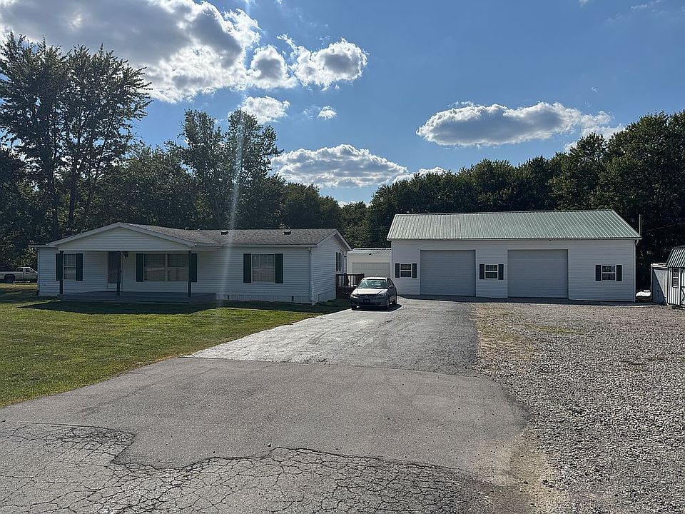 2 Acres. House is 3 bedroom 2 bath with an open living room and kitchen area with 1,296 square feet. Has central air/heat pump with electric backup. Comes with dishwasher, stove, washer and drier. Garage is a 32x48 fully insulated with a propane furnace/5 ton a/c all in one unit, has 12’ ceilings, 2 10x12 garage doors and a 10x7 office. Has a 14x48 storage addition on rear with shelves and a side addition that’s 14x28 with concrete floor and 8x10 garage door. Also has a 16x10 Amish shed. House is on town sewer and only a few minutes from West Union Schools. Call/Text 937- 515- 0305
