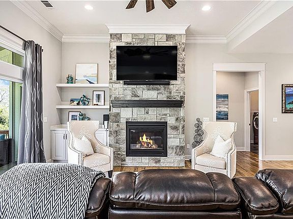 Floor-to-ceiling stone fireplaceGranite counter wet barVaulted entryFree-standing tubPrimary suiteHardwood floorsTasteful designer finishes