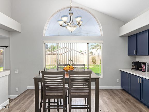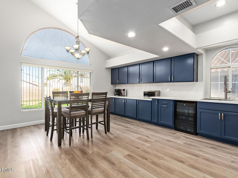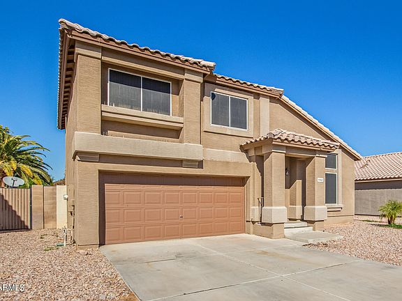 Looking for a new home? Check out this charming two-story property in convenient Peoria location! Be greeted by a formal living room, perfect for receiving guests! Continue onto the eat-in kitchen, boasting an SS Elec range, ample cabinetry, quartz counters, and subway tile backsplash. You'll love the sunken family room with sliding doors merging the inside & outside activities! Vaulted ceilings add to the airy feel, complemented by designer paint, abundant natural light, and wood-look flooring w/carpet in bedrooms. Head upstairs to find the main bedroom, which features a double-door entry & a full bathroom for added comfort. Discover the large backyard adorned with natural grass & a covered patio for relaxing! 2-car garage & a low-care front yard are just icing on the cake. Welcome home!
