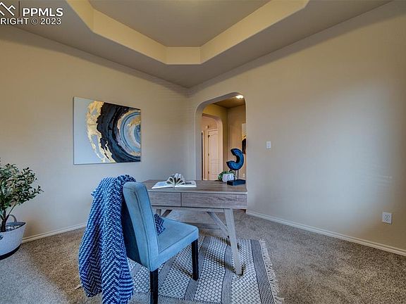 Welcome to this beautiful home in Cordera Ranch! As you enter this spacious home, you can't help but be captivated by the striking windows in the living room that offer an incredible view of Pikes Peak and the abundance of natural light that fills this home. Directly to the left, you will find a bright and open room, perfect for an office, study, or library. The laundry room is complete with cabinets and direct access to the 3-car, tandem garage equipped with shelving for extra storage. Venture into the generously-sized kitchen and embrace family and friends in this space complete with hardwood floors, ample counter space, center island, double oven, recessed lighting, and eat-in dining area. Spend time together in the sizable living room and cozy up next to the gas fireplace. The massive height of the ceiling makes this room grand in it's own right along with the beautiful decorative built-ins that can display your treasured items. Across the way you will find a bedroom with more amazing views of Pikes Peak and a 3/4 bath with circular vessel sink and stand-in shower. Need a little outdoor time? Stroll out the pane glass door off the living room onto the extensive deck with more glorious views of the Front Range and enjoy good times in the landscaped backyard. Take a little trip downstairs to the unfinished, garden-level basement that is waiting for you to transform it into your own personal space with existing rough-in plumbing. Explore upstairs to the loft and into the master bedroom with vaulted ceilings and more gorgeous views of Pikes Peak! The sizable 5-piece bath is complete with a walk-in closet, large tub, stand-in shower, and dual vanity. Cross back through the loft and you will discover two additional airy bedrooms adjoined by a bathroom. This is an incredible home on a cul-de-sac with Spanish tile roofing, stucco exterior, and automatic sprinklers. Don't miss fun in the sun at the community center included in the HOA!