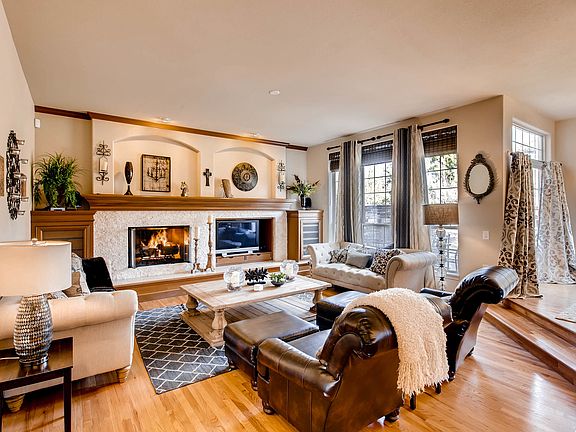 This gorgeous 5 bedroom, 4.5 bath home in the exclusive Heritage Hills gated community sits on a wonderful corner lot with nearly 40 trees wrapping the professionally landscaped property. The beautiful stone and wood exterior give the home a Colorado flavor. Inside the home is appointed with high end finishes throughout including slab granite countertops and stainless appliances with oversize cabinets. The breakfast nook opens to the back patio that features a built-in stacked stone gas Beefeater grill and a stunning outdoor fireplace. Upstairs, in addition to three bedrooms, wide double doors open to the airy master bedroom featuring an elegant fireplace and connects to a large open bathroom and huge walk-in closet. The basement was professionally finished not permitted in Summer 2015 and includes an impressive media and recreation area as well as slab granite wet bar for entertaining along with an oversize bedroom and stunning bathroom. The home is walking distance to the elementary school and just minutes to Park Meadows mall and light rail.