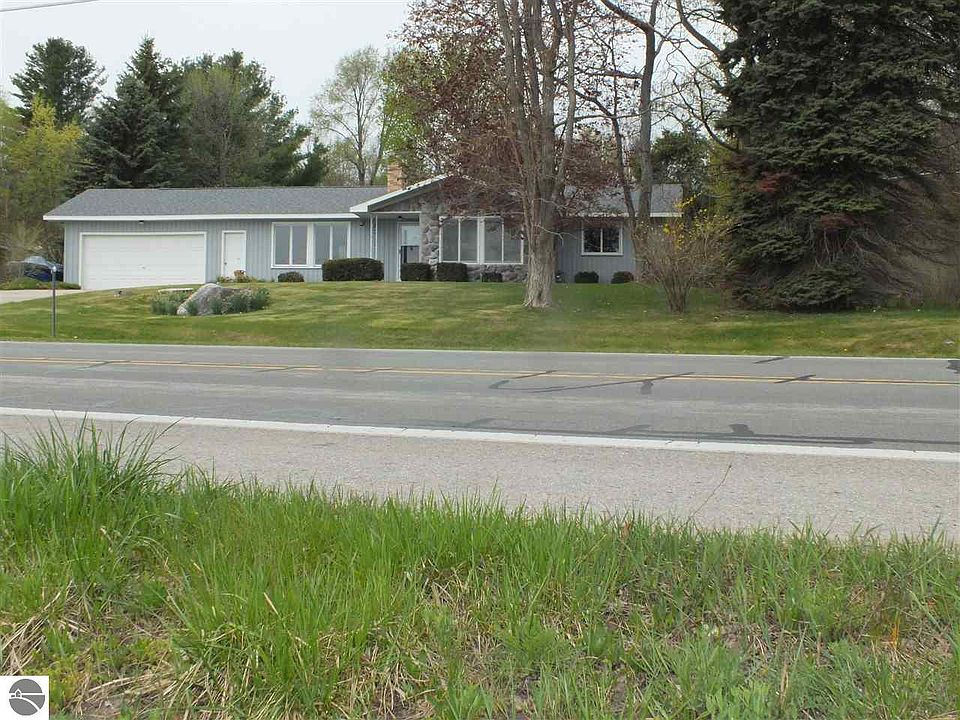 Mission Peninsula water views. Gorgeous sparkling blue water views are all yours from this freshly updated 3 br, 1 3/4 bath ranch home. A cozy living room in addition to a main floor family room, 2 fireplaces and a full lower level. Large lot with underground sprinkling, a back patio, a two car attached garage and 108 feet of private sandy east bay frontage. Life has never been so good! ?Wonderful location just 5 miles out on Old Mission peninsula.