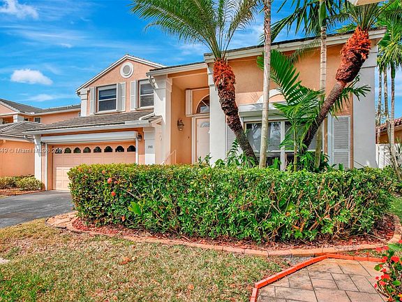 Just under 2000 sqf in this 3/2.5 + a loft (could be the 4th bedroom if enclosed) with marble flooring in the main living areas and wood flooring in all bedrooms. Open floor plan with soaring ceilings and grand entrance. Oversized kitchen featuring granite counter tops, wood cabinets, and s/s appliances overlooking the spacious family room. Downstairs primary suite with walk-in closet. Big secondary bedrooms, and large open loft that can be the 4th bedroom. Relax on your patio and eat from your mango tree while looking at the water. Roof 2006 and full accordion shutters. Steps to Central Park, and down the road from Publix , Plantation Walk, and Sawgrass Mills.