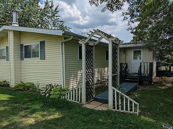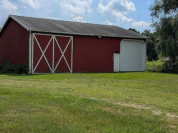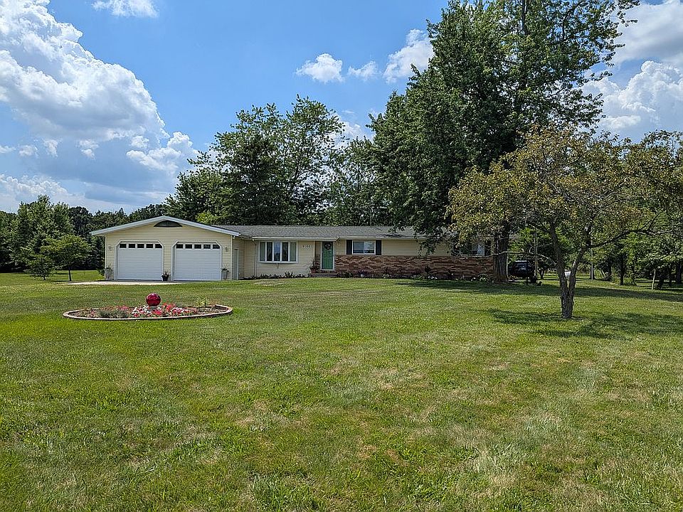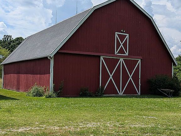 This 4 bedroom, ranch style home has an eat in kitchen with lots of cupboards. The kitchen, living room, and dining room have vaulted ceilings. It has a backdoor mudroom. The basement is 3/4 finished with a fireplace, full bathroom, laundry room, and lots of storage. The property has a 38 x 48 barn with water and electric, a 40 x 50 workshop, a 1 car detached garage, and a 2 1/2 car attached garage. Five acres are wooded and it has an apple orchard. It has a new water softener and the furnace and AC have recently been replaced. Kitchen and laundry appliances and a Generac whole house generator are included.