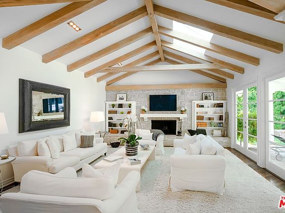 Enchanting Traditional Contemporary home located on a private street off of lower Coldwater Canyon, just minutes from the heart of Beverly Hills. This spectacular home has been completely remodeled & is private & gated w/2 drive-in gates opening to a circular motorcourt & 2-car garage. Enter into the foyer leading to the spacious living room w/soaring beamed & skylit ceiling, stone fireplace & walls of French doors opening to the outdoor space. There is a fabulous rotunda-shaped dining room adjoining the living room, built-in bar, cozy family room & light & bright chefs kitchen w/professional appliances & breakfast nook. Bedrooms consist of 3 family or guest bdrm suites & the spacious master suite w/sitting area & beautiful marble bathroom w/oversized shower & picture window overlooking the lush exterior. The gorgeous park-like backyard offers a tremendous setting for both relaxing & entertaining complete w/patio, sprawling lawn, koi pond w/waterfall & fabulous rock-lined pool.