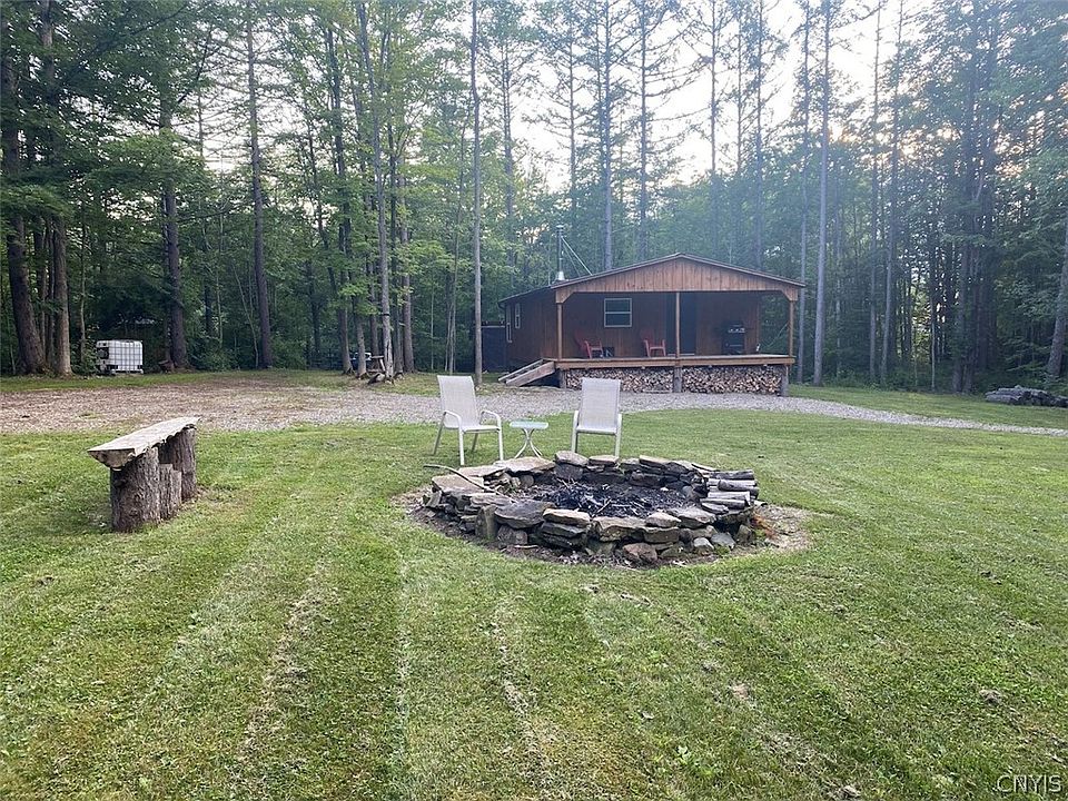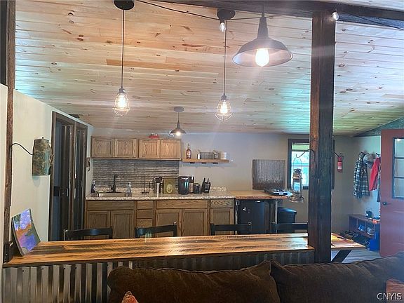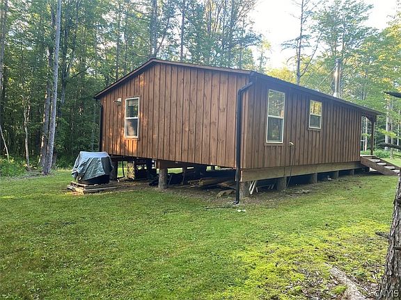 This 2 bedroom cabin was built in 2022. This beautiful cabin offers seclusion and tranquility at its finest. As you approach the cabin, a few steps lead up to a large, covered porch setting the stage for relaxation. Upon entering the cabin, you'll be struck by the refreshing vibe. Open-concept kitchen and living room boast gorgeous knotty pine and barn board finishes. The kitchen features ample countertop space, cupboards, and a handmade wood bar with metal accents and bar stools. The living room area, equipped with a wood stove, promises warmth during the cool seasons. The cabin includes two comfortable bedrooms and a full bath. It is wired for bright lighting powered by an included generator, and features a holding tank for water, a water pump, and an electric on-demand hot water tank in the bathroom.
