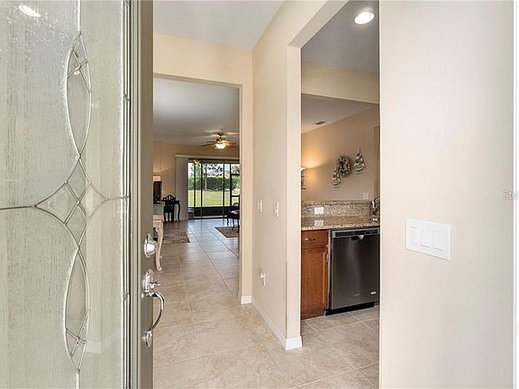 Looking for your next adventure? This well-maintained Noir Coast 2/2/2 with private back yard in Del Webb's beautiful Stone Creek is just for you! The custom front door welcomes you as you enter inside. The kitchen features stainless steel appliances, granite counter tops, plenty of cabinet storage, pantry, brushed nickel hardware throughout. Blinds, ceiling fans, 20" porcelain tile, upgraded carpet and pad in bedrooms, tray ceiling in master, upgraded tile in both showers, screened garage and screened lanai to enjoy your morning coffee, and so much more. Nice open floor plan for entertaining. Lawn, landscaping, and irrigation is maintained by the HOA allowing you extra time to enjoy all the amenities this beautiful community has to offer. Conveniently located near shopping, restaurants, and medical facilities. Come take a look, you will not be disappointed in this lovely home and preferred community!