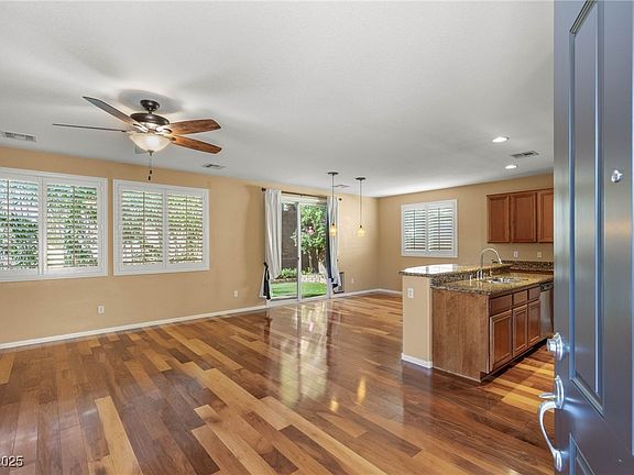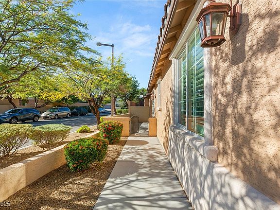 Absolutely stunning and rare upgraded single-story home in the heart of Summerlin! This highly sought-after great room floor plan offers seamless living with an inviting open layout and an oversized private courtyard perfect for entertaining or relaxing. Situated on a desirable corner lot, this home is filled with an abundance of natural light and features beautiful plantation shutters throughout. The lush yet low-maintenance backyard showcases a paver patio, turf, and total privacy, an ideal retreat for outdoor enjoyment. Just steps from South Tower Park and minutes from Downtown Summerlin, Red Rock Canyon, and top-rated dining, shopping, and entertainment.